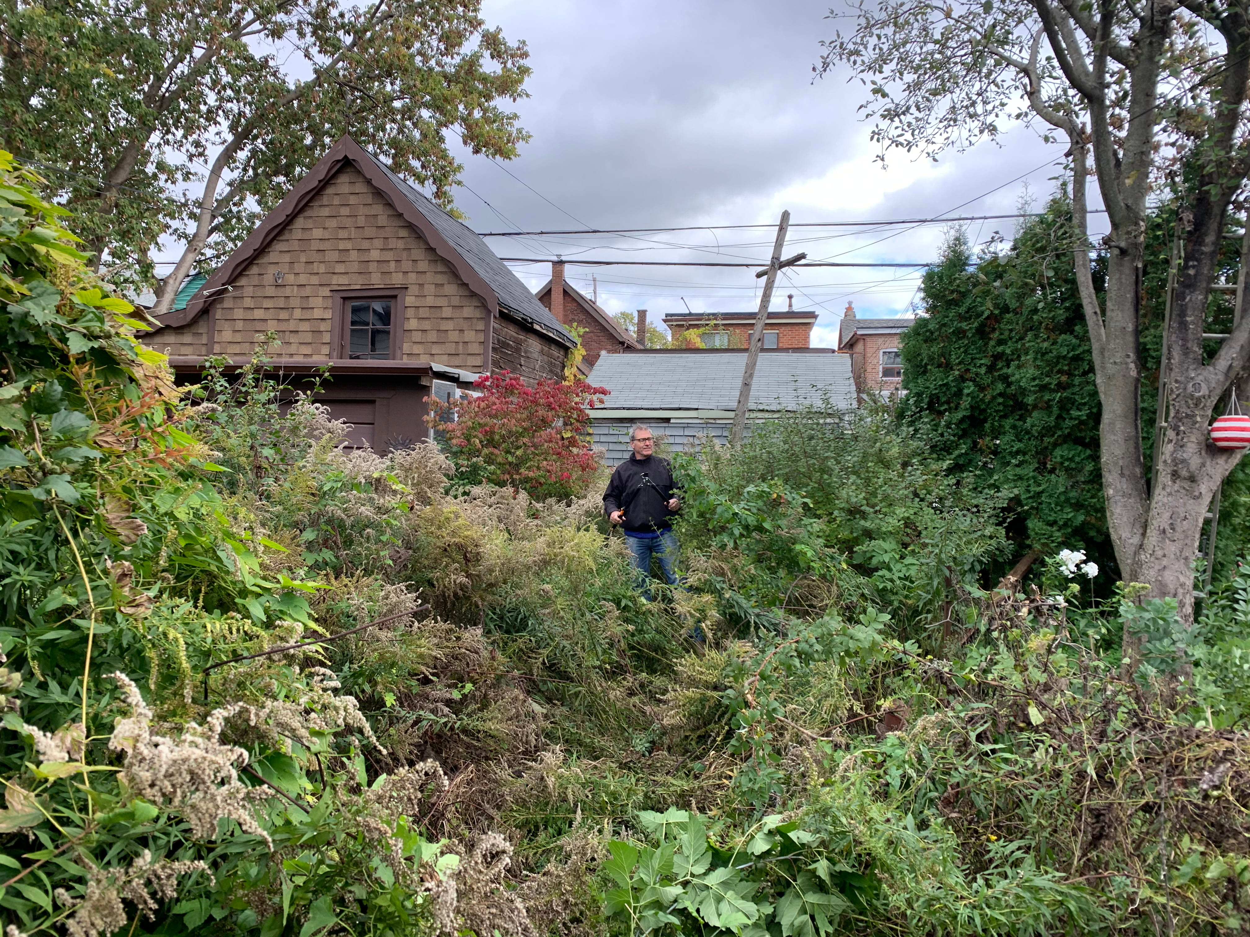 WEED CONTROL - Before photo - large backyard with out of control weeds.