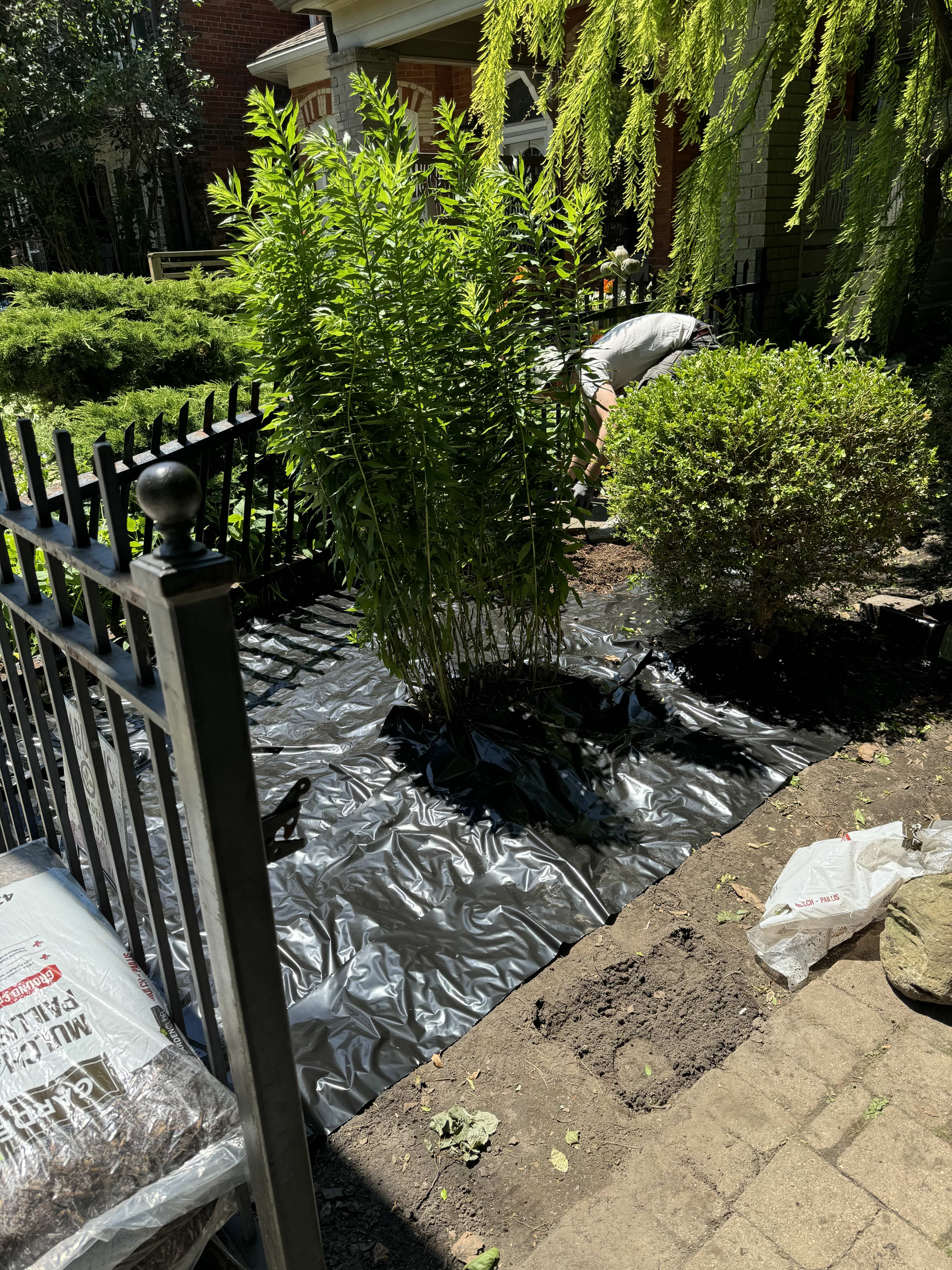 Client had gout weed infestation. We dug it out and covered with plastic & mulch.